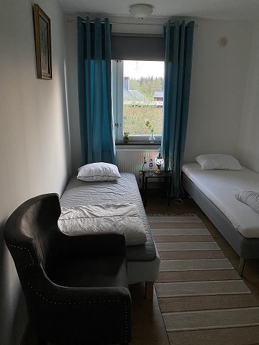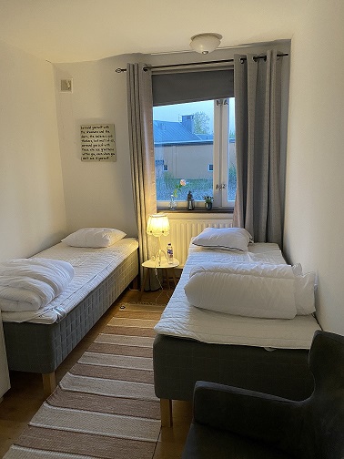 ett tvåbäddsrum då vi inte blandar män och kvinnor i samma fyrabäddsrum.